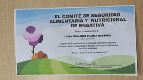 Presentación proyecto sobre huertas realizado en la alcaldía logrando un reconocimiento para nuestros participantes.